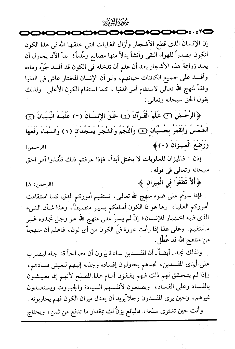 ولذلك يقول الحق سبحانه وتعالى: {الرحمن عَلَّمَ القرآن خَلَقَ الإنسان عَلَّمَهُ البيان الشمس والقمر بِحُسْبَانٍ والنجم والشجر يَسْجُدَانِ والسمآء رَفَعَهَا وَوَضَعَ الميزان} [الرحمن: 1 - 7] .