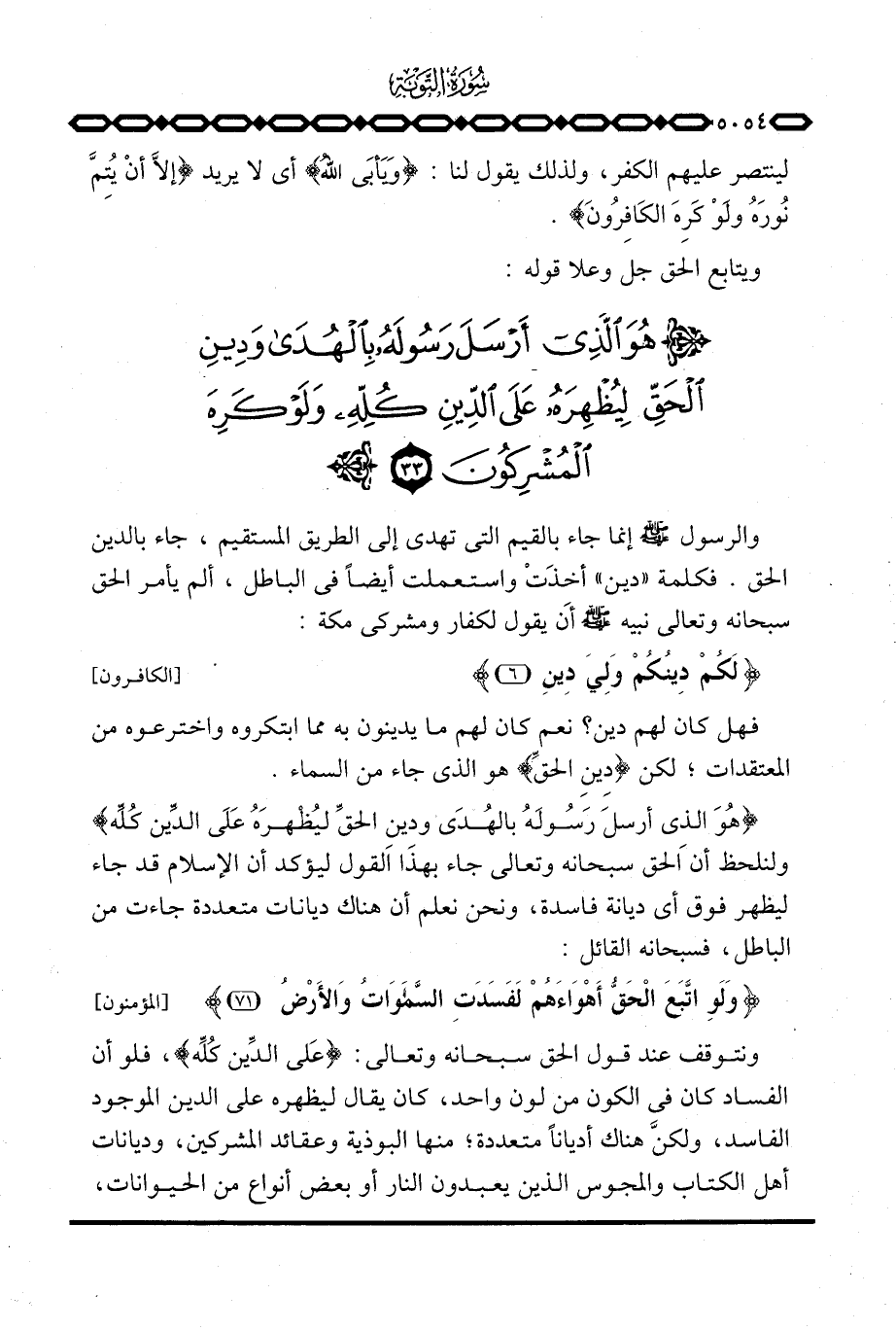 {هُوَ الذي أَرْسَلَ رَسُولَهُ بالهدى وَدِينِ الحق لِيُظْهِرَهُ عَلَى الدين كُلِّهِ} ولنلحظ أن الحق سبحانه وتعالى جاء بهذا القول ليؤكد أن الإسلام قد جاء ليظهر فوق أي ديانة فاسدة، ونحن نعلم أن هناك ديانات متعددة جاءت من الباطل، فسبحانه القائل: {وَلَوِ اتبع الحق أَهْوَآءَهُمْ لَفَسَدَتِ السموات والأرض} [المؤمنون: 71] .