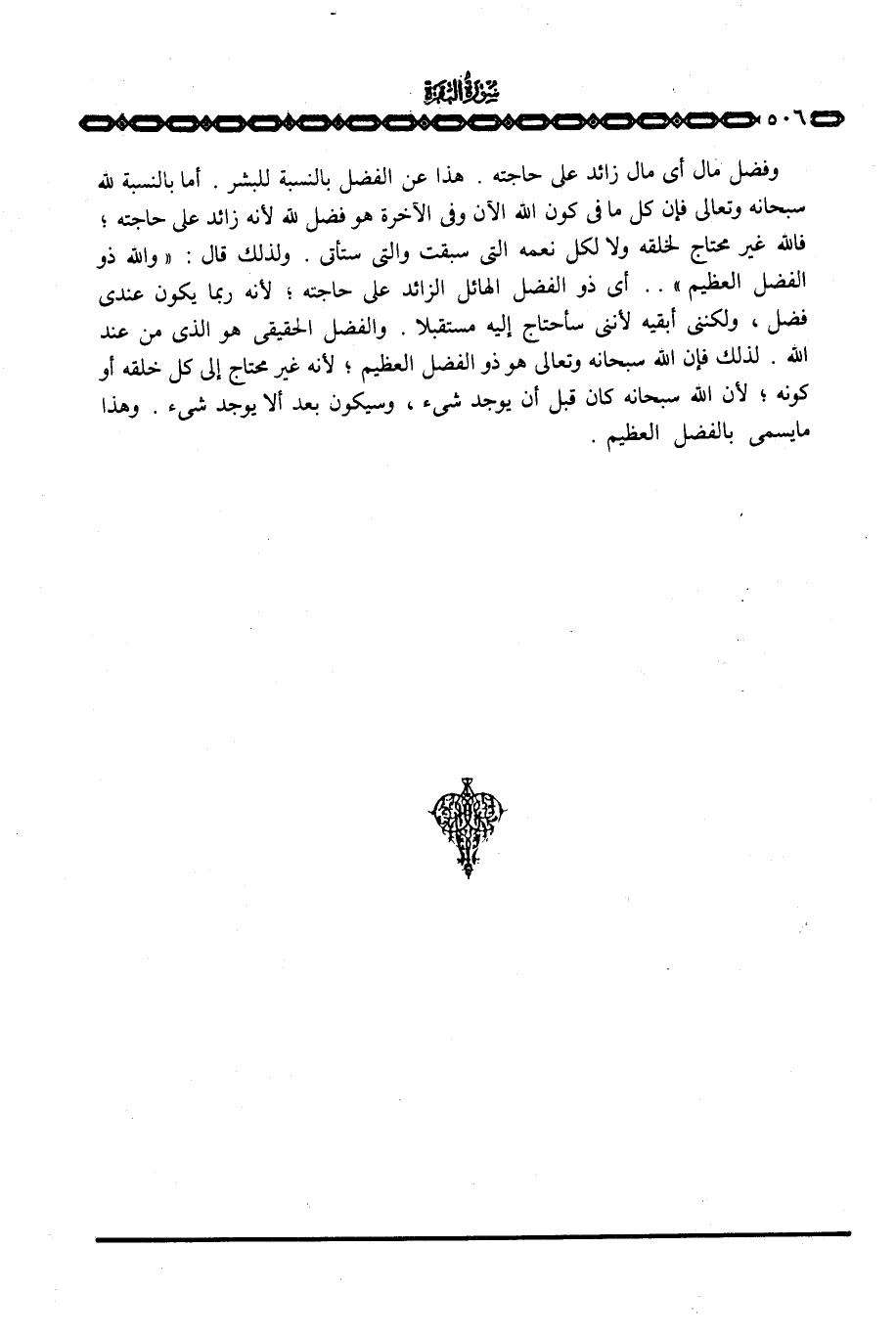 وفضل مال أي مال زائد على حاجته. هذا عن الفضل بالنسبة للبشر. أما بالنسبة لله سبحانه وتعالى فإن كل ما في كون الله الآن وفي الآخرة هو فضل الله لأنه زائد على حاجته؛ فالله غير محتاج لخلقه ولا لكل نعمه التي سبقت والتي ستأتي. ولذلك قال: {والله ذُو الفضل العظيم} . . أي ذو الفضل الهائل الزائد على حاجته؛ لأنه ربما يكون عندي فضل، ولكني أبقيه لأنني سأحتاج إليه مستقبلا. والفضل الحقيقي هو الذي من عند الله. لذلك فإن الله سبحانه وتعالى هو ذو الفضل العظيم؛ لأنه غير محتاج إلى كل خلقه أو كونه؛ لأن الله سبحانه كان قبل أن يوجد شيء، وسيكون بعد ألا يوجد شيء. وهذا ما يسمى بالفضل العظيم.