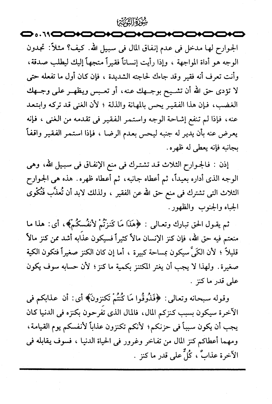 إذن: فالجوارح الثلاث قد تشترك في منع الإنفاق في سبيل الله، وهي الوجه الذي أداره بعيداً، ثم أعطاه جانبه، ثم أعطاه ظهره. هذه هي الجوارح الثلاث التي تشترك في منع حق الله عن الفقير، ولذلك لا بد أن تُعذَّب فَتُكْوى الجباه والجنوب والظهور.