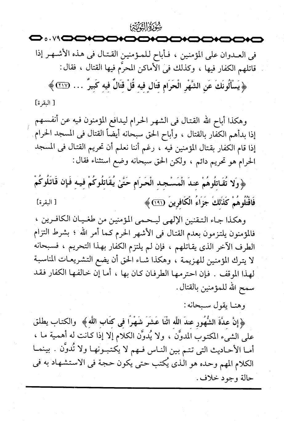 وهكذا جاء التقنين الإلهي ليحمي المؤمنين من طغيان الكافرين، فالمؤمنون يلتزمون بعدم القتال في الأشهر الحرم كما أمر الله؛ بشرط التزام الطرف الآخر الذي يقاتلهم، فإن لم يلتزم الكفار بهذا التحريم، فسبحانه لا يترك المؤمنين للهزيمة، وهكذا شاء الحق أن يضع التشريعات المناسبة لهذا الموقف. فإن احترمها الطرفان كان بها، أما إن خالفها الكفار فقد سمح الله للمؤمنين بالقتال.