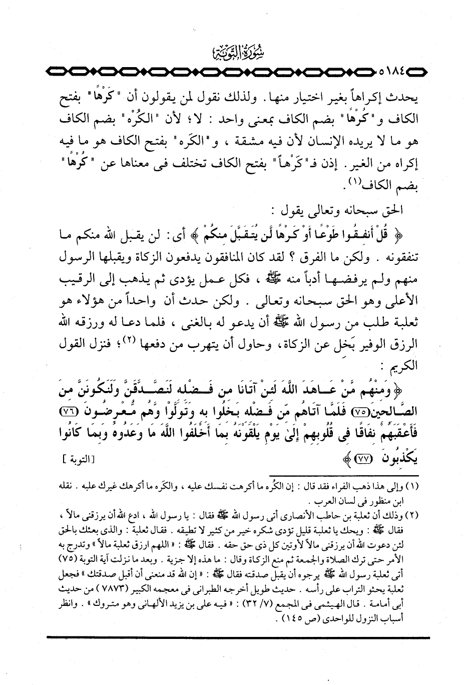 {قُلْ أَنفِقُواْ طَوْعاً أَوْ كَرْهاً لَّن يُتَقَبَّلَ مِنكُمْ} أي: لن يقبل الله منكم ما تنفقونه. ولكن ما الفرق؟ لقد كان المنافقون يدفعون الزكاة ويقبلها الرسول منه ولم يرفضها أدباً منه صَلَّى اللَّهُ عَلَيْهِ وَسَلَّم َ، فكل عمل يؤدى ثم يذهب إلى الرقيب الأعلى وهو الحق سبحانه وتعالى. ولكن حدث أن واحداً من هؤلاء هو ثعبلة طلب من رسول الله صَلَّى اللَّهُ عَلَيْهِ وَسَلَّم َ أن يدعو له بالغنى، فلما دعا له ورزقه الله الرزق الوفير بَخِل عن الزكاة، وحاول أن يتهرب من دفعها؛ فنزل القول الكريم: {وَمِنْهُمْ مَّنْ عَاهَدَ الله لَئِنْ آتَانَا مِن فَضْلِهِ لَنَصَّدَّقَنَّ وَلَنَكُونَنَّ مِنَ الصالحين فَلَمَّآ آتَاهُمْ مِّن فَضْلِهِ بَخِلُواْ بِهِ وَتَوَلَّواْ وَّهُمْ مُّعْرِضُونَ فَأَعْقَبَهُمْ نِفَاقاً فِي قُلُوبِهِمْ إلى يَوْمِ يَلْقَوْنَهُ بِمَآ أَخْلَفُواْ الله مَا وَعَدُوهُ وَبِمَا كَانُواْ يَكْذِبُونَ} [التوبة: 75 - 77]