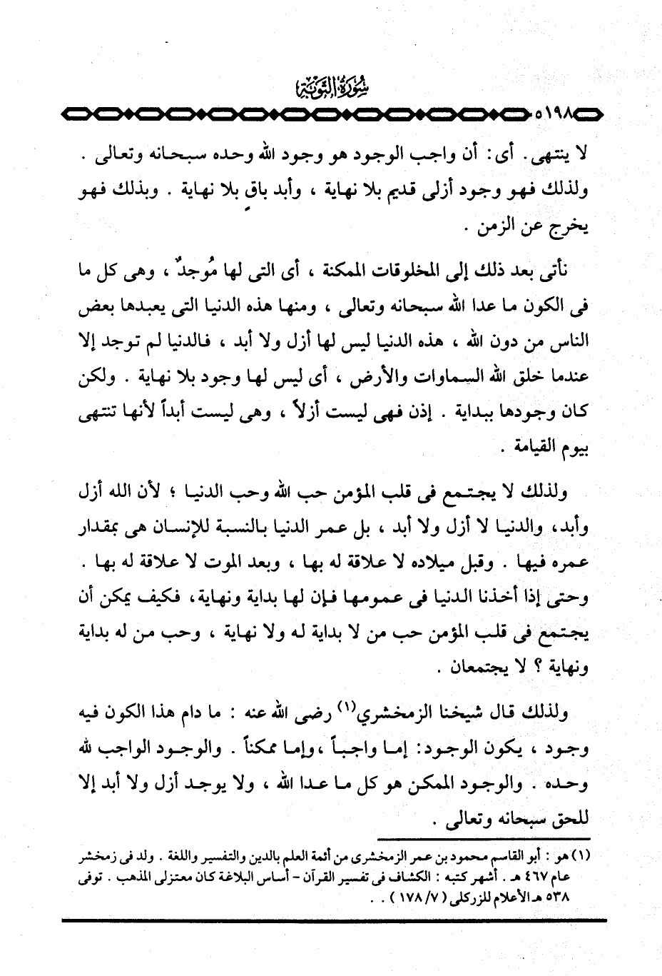 ولذلك قال شيخنا الزمخشري رَضِيَ اللَّهُ عَنْه: ما دام هذا الكون فيه وجود، يكون الوجود: إما واجباً، وإما ممكناً. والوجود الواجب لله وحده. والوجود الممكن هو كل ما عدا الله، ولا يوجد أزل ولا أبد إلا للحق سبحانه وتعالى.
