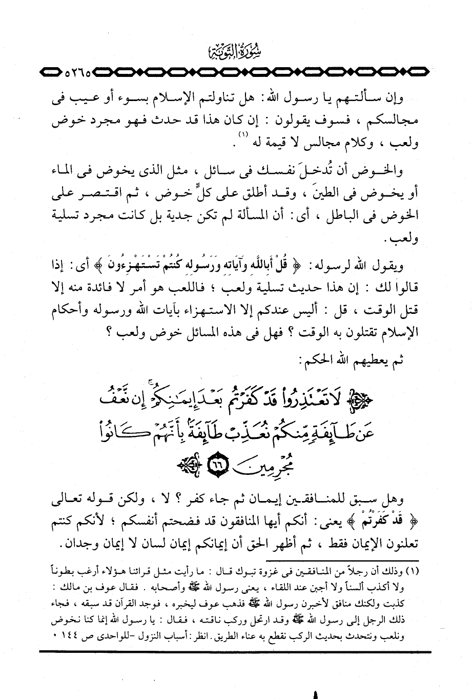 ويقول الله لرسوله: {قُلْ أبالله وَآيَاتِهِ وَرَسُولِهِ كُنتُمْ تَسْتَهْزِءُونَ} أي: إذا قالوا لك: إن هذا حديث تسلية ولعب؛ فاللعب هو أمر لا فائدة منه إلا قتل الوقت، أليس عندكم إلا الاستهزاء بآيات الله ورسوله وأحكام الإسلام تقتلون به الوقت؟ فهل هذه المسائل خوض ولعب؟