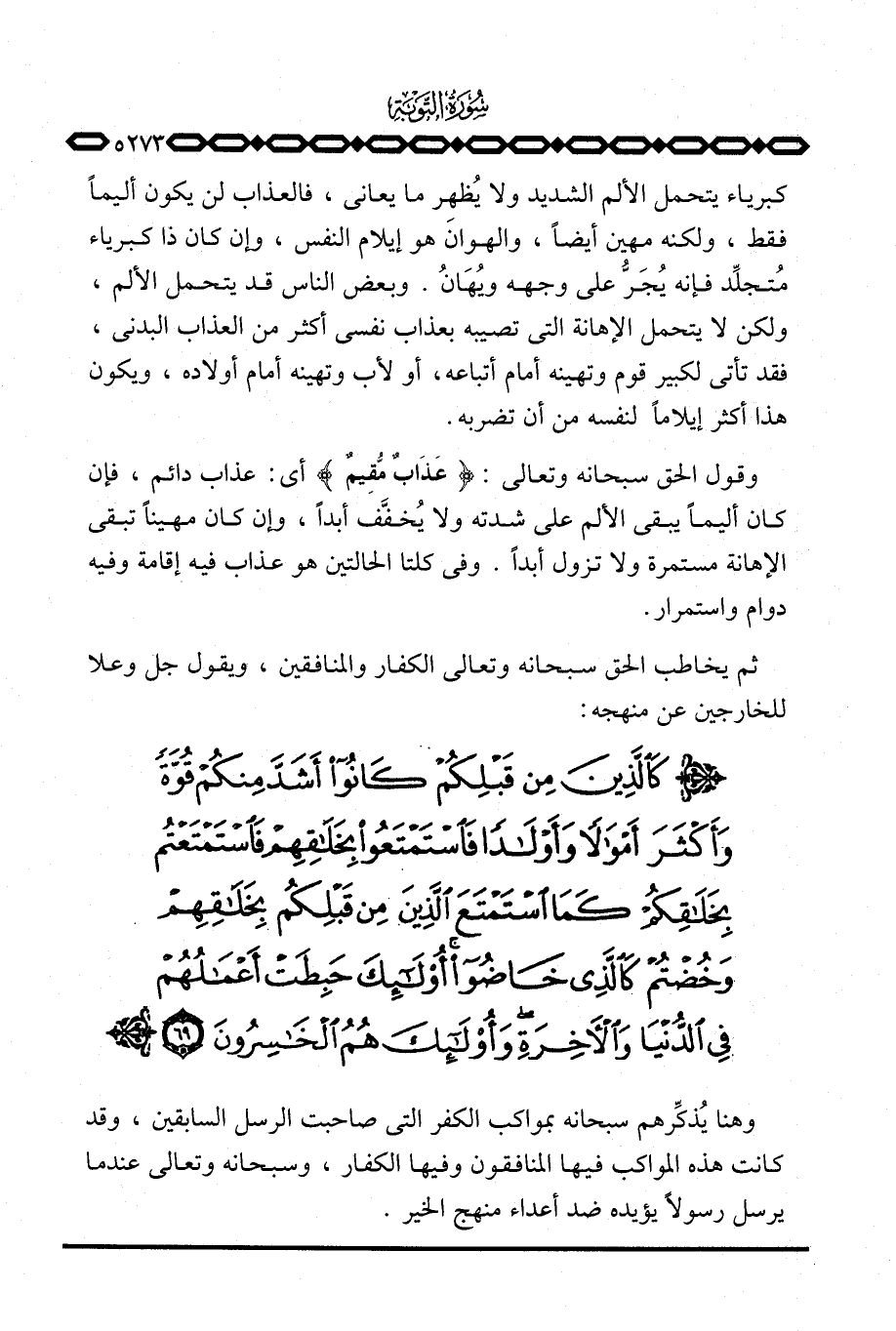 كبرياء يتحمل الألم الشديد ولا يُظْهِر ما يعاني، فالعذاب لن يكون أليماً فقط، ولكنه مهين أيضاً، والهوان هو إيلام النفس، وإن كان ذا كبرياء مُتجلِّد فإنه يُجَرُّ على وجهه ويُهَانُ. وبعض الناس قد يتحمل الألم، ولكن لا يتحمل الإهانة التي تصيبه بعذاب نفسي أكثر من العذاب البدني، فقد تأتي لكبير قوم وتهينه أمام أتباعه، أو لأب وتهينه أمام أولاده، ويكون هذا أكثر إيلاماً لنفسه من أن تضربه.