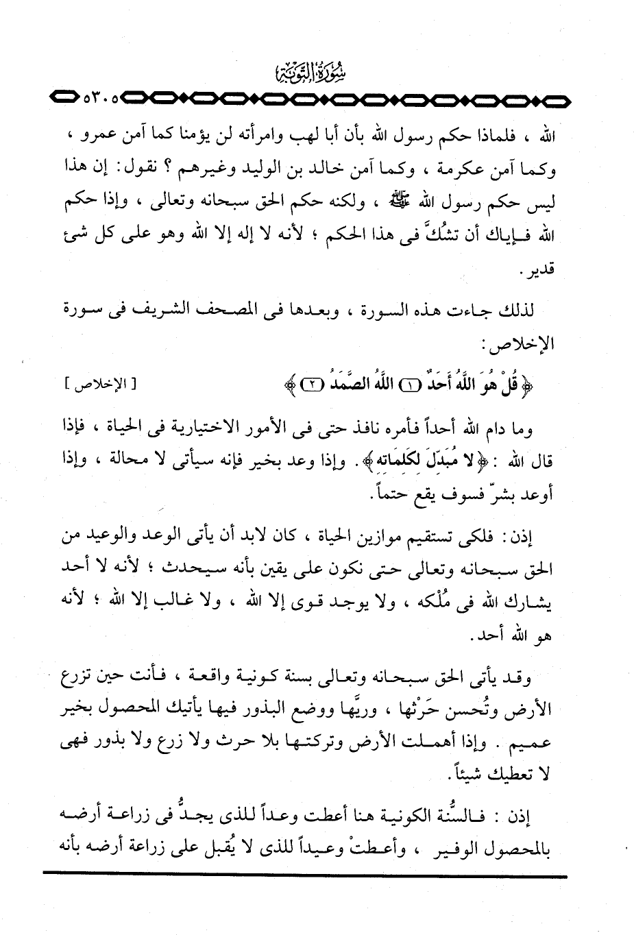 الله، فلماذا حكم رسول الله بأن أبا لهب وامرأته لن يؤمنا كما آمن عمرو، وكما آمن عكرمة، وكما آمن خالد بن الوليد وغيرهم؟ نقول: إن هذا ليس حكم رسول الله صَلَّى اللَّهُ عَلَيْهِ وَسَلَّم َ، ولكنه الحق سبحانه وتعالى، وإذا حكم الله فإياك أن تشُكَّ في هذا الحكم؛ لأنه لا إله إلا الله وهو على كل شيء قدير.