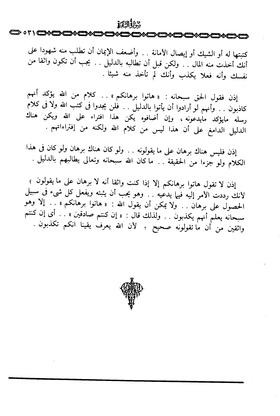 إذن فليس هناك برهان على ما يقولونه. . ولو كان هناك برهان ولو كان في هذا الكلام ولو جزءا من الحقيقة. . ما كان الله سبحانه وتعالى يطالبهم بالدليل.