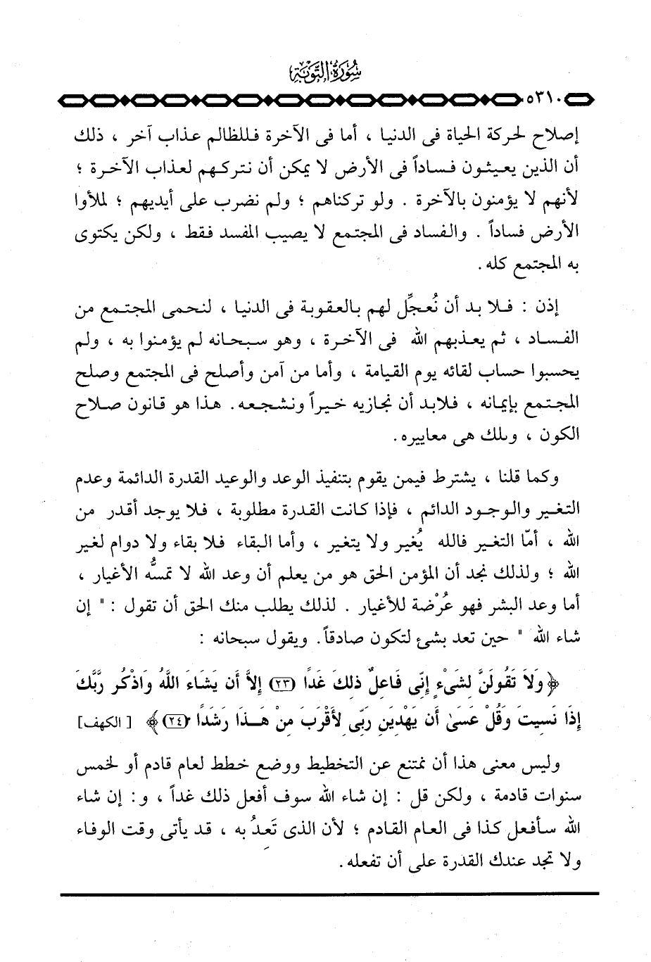 وليس معنى هذا أن نمتنع عن التخطيط ووضع خطط لعام قادم أو لخمس سنوات قادمة، ولكن قل: إن شاء الله سوف أفعل ذلك غداً، و: إن شاء الله سأفعل كذا في العام القادم؛ لأن الذي تَعِدُ به، قد يأتي وقت الوفاء ولا تجد عندك القدرة على أن تفعله.