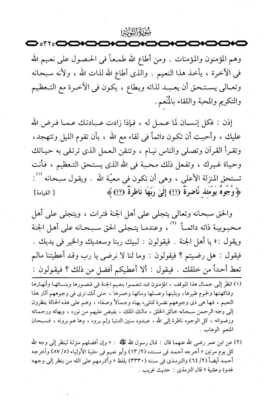 والحق سبحانه وتعالى يتجلى على أهل الجنة فترات، ويتجلى على أهل محبوبية ذاته دائماً، وعندما يتجلى الحق سبحانه على أهل الجنة ويقول: «يا أهل الجنة. فيقولون: لبيك ربنا وسعديك والخير في يديك. فيقول: هل رضيتم؟ فيقولون: وما لنا لا نرضى يا رب وقد أعطيتنا مالم تعط أحداً من خلقك. فيقول: ألا أعطيكم أفضل من ذلك؟ فيقولون: