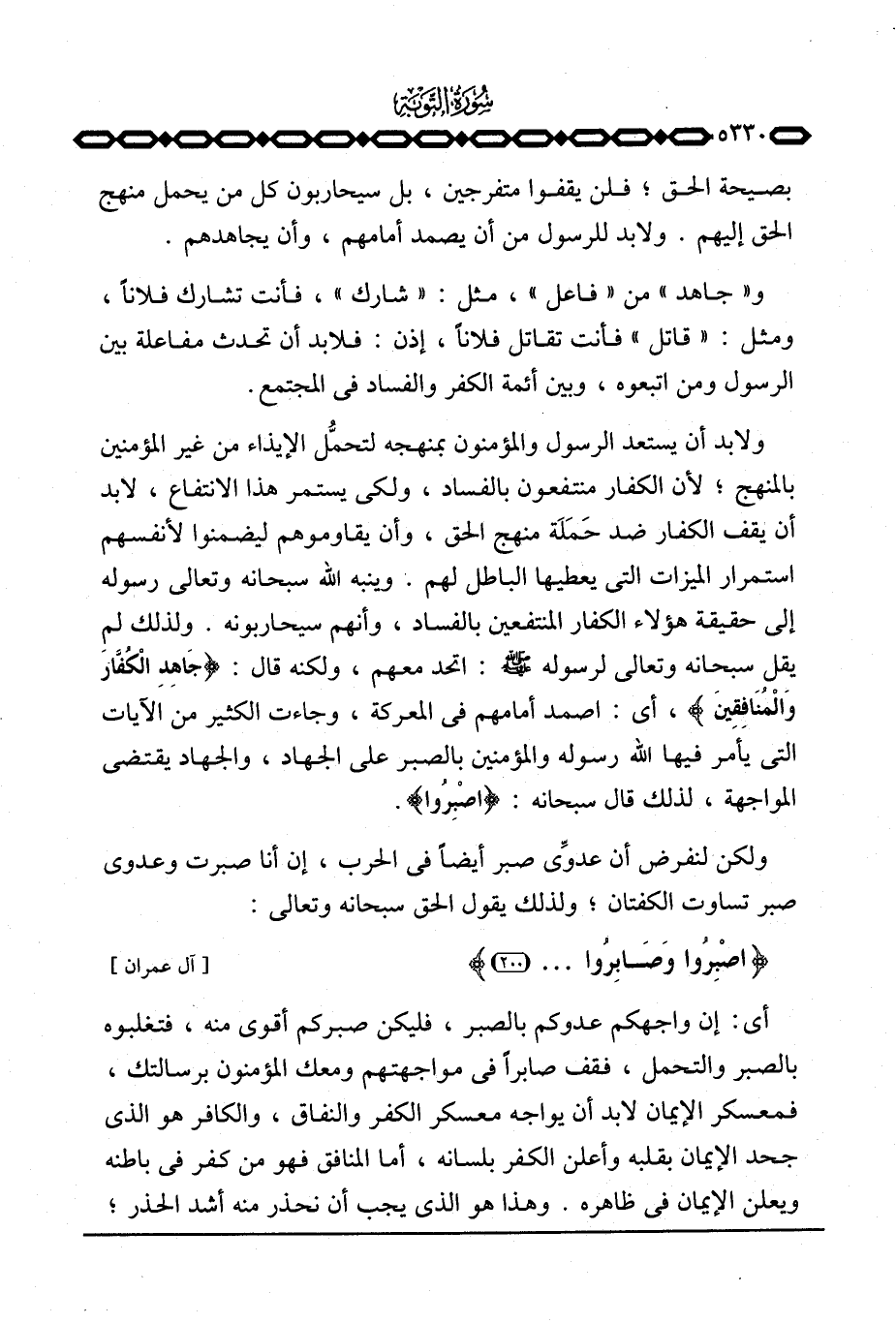 و «جاهد» من «فاعل» ، مثل «شارك» ، فأنت تشارك فلاناً، ومثل: «قاتل» فأنت تقاتل فلاناً، إذن: فلابد أن تحدث مفاعلة بين الرسول ومن ابتعوه، وبين أئمة الكفر والفساد في المجتمع.