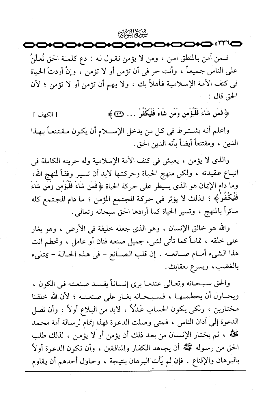 فمن آمن بالمنطق آمن، ومن لا يؤمن نقول له: دع كلمة الحق تُعلَنُ على الناس جميعاً، وأنت حر في أن تؤمن أو لا تؤمن، وإنْ أردتَ الحياة في كنف الأمة الإسلامية فأهلاً بك، ولا يهم أن تؤمن أو لا تؤمن؛ لأن الحق قال: