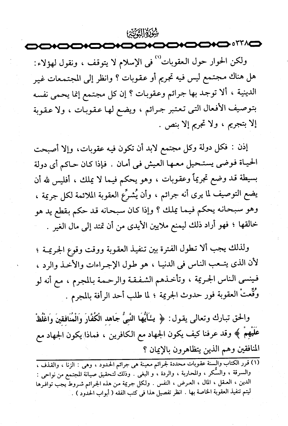 ولكن الحوار حول العقوبات في الإسلام لا يتوقف، ونقول لهؤلاء: هل هناك مجتمع ليس فيه تجريم أو عقوبات؟ وانظر إلى المجتمعات غير الدينية، ألا توجد بها جرائم وعقوبات؟ إن كل مجتمع إنما يحمي نفسه بتوصيف الأفعال التي تعتبر جرائم، ويضع لها عقوبات، ولا عقوبة إلا بتجريم، ولا تجريم إلا بنص.