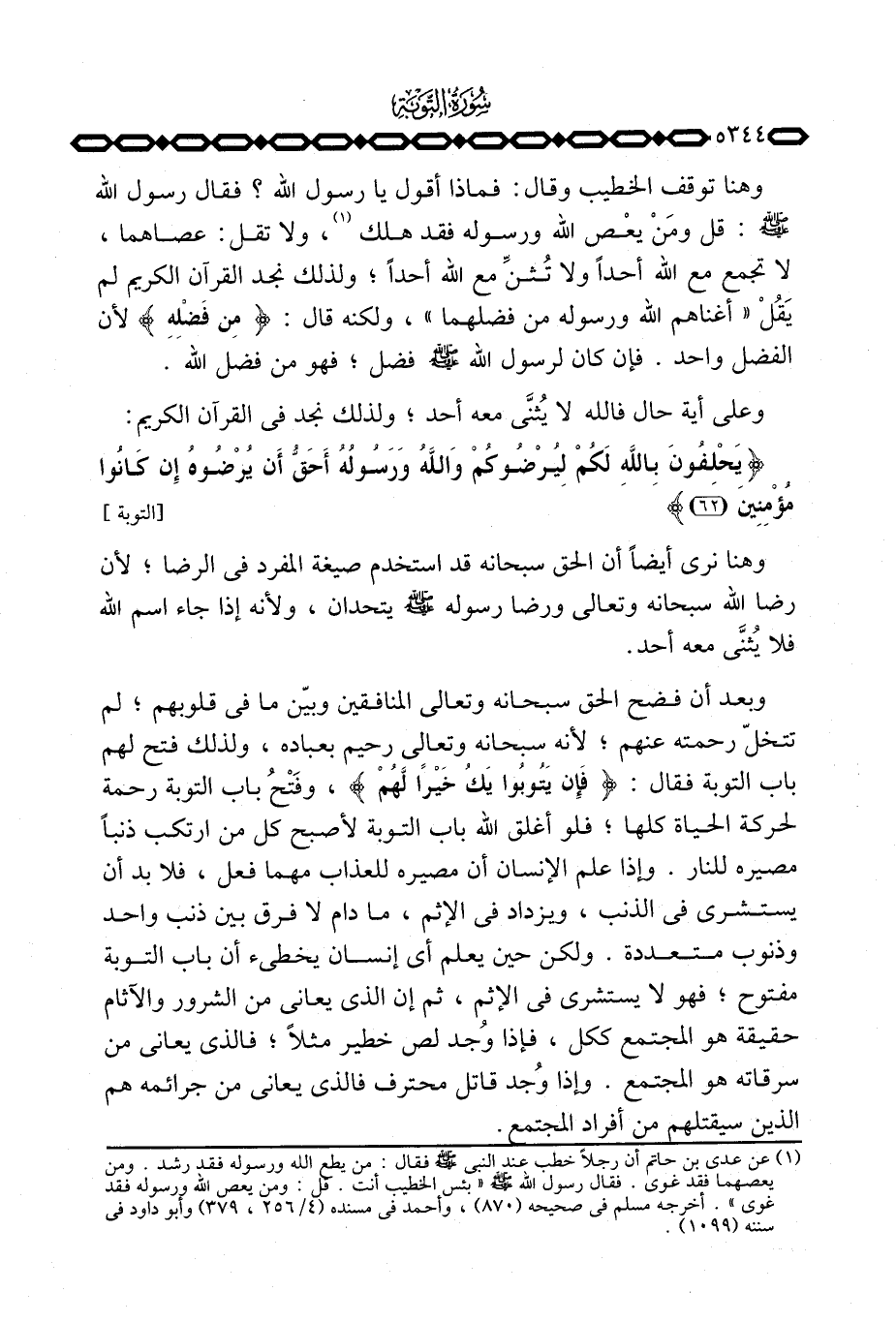 وعلى أية حال فالله لا يُثنَّى معه أحد؛ ولذلك نجد في القرآن الكريم: {يَحْلِفُونَ بالله لَكُمْ لِيُرْضُوكُمْ والله وَرَسُولُهُ أَحَقُّ أَن يُرْضُوهُ إِن كَانُواْ مُؤْمِنِينَ} [التوبة: 62]