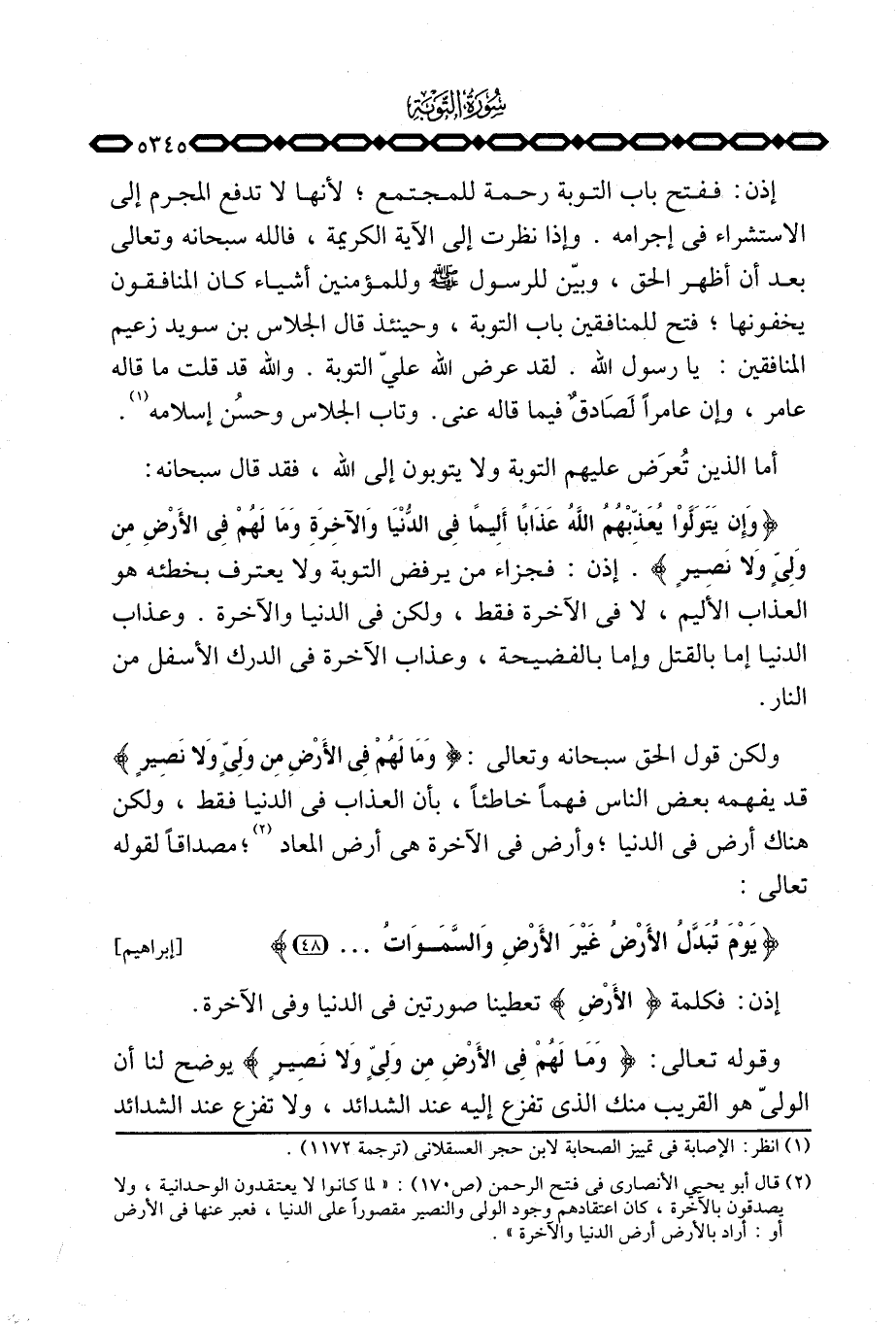 {وَإِن يَتَوَلَّوْا يُعَذِّبْهُمُ الله عَذَاباً أَلِيماً فِي الدنيا والآخرة وَمَا لَهُمْ فِي الأرض مِن وَلِيٍّ وَلاَ نَصِيرٍ} . إذن: فجزاء من يرفض التوبة ولا يعترف بخطئه هو العذاب الأليم، لا في الآخرة فقط، ولكن في الدنيا والآخرة.