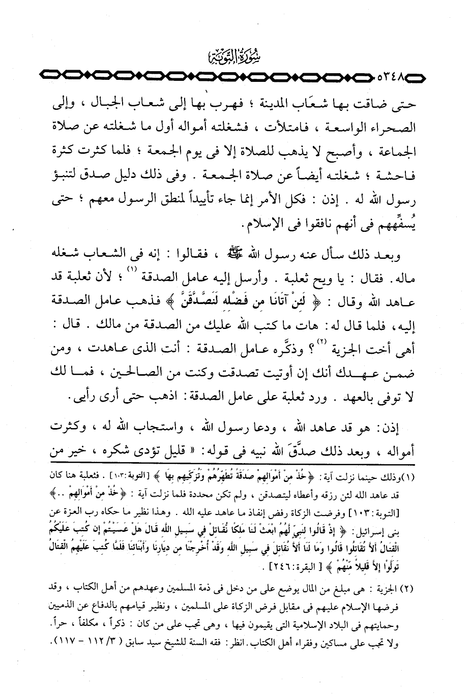 وبعد ذلك سأل عنه رسول الله صَلَّى اللَّهُ عَلَيْهِ وَسَلَّم َ، فقالوا: إنه في الشعاب شغله ماله. فقال: يا ويح ثعلبة. وأرسل إليه عامل الصدقة؛ لأن ثعلبة قد عاهد الله وقال: {لَئِنْ آتَانَا مِن فَضْلِهِ لَنَصَّدَّقَنَّ} فذهب عامل الصدقة إليه، فلما قال له: هات ما كتب الله عليك من الصدقة من مالك. قال: أهي أخت الجزية؟ وذكَّره عامل الصدقة: أنت الذي عاهدت، ومن ضمن عهدك أنك إن أوتيت تصدقت وكنت من الصالحين، فما لك لا توفي بالعهد. ورد ثعلبة على عامل الصدقة: اذهب حتى أرى رأيي.