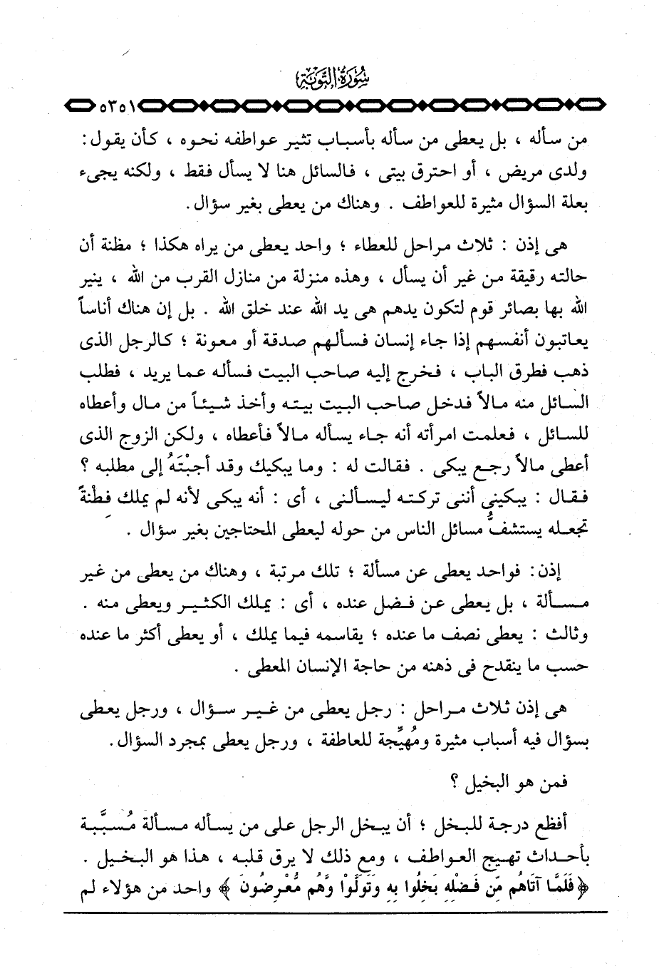 هي إذن ثلاث مراحل: رجل يعطي من غير سؤال، ورجل يعطي بسؤال فيه أسباب مثيرة ومُهيِّجة للعاطفة، ورجل يعطي بمجرد السؤال.