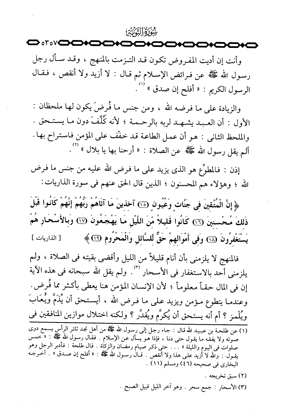 وأنت إذ أديت المفروض تكون قد التزمت بالمنهج، وقد سأل رجل رسول الله صَلَّى اللَّهُ عَلَيْهِ وَسَلَّم َ عن فرائض الإسلام ثم قال: لا ازيد ولا أنقص، فقال الرسول الكريم: «أفلح إن صدق»