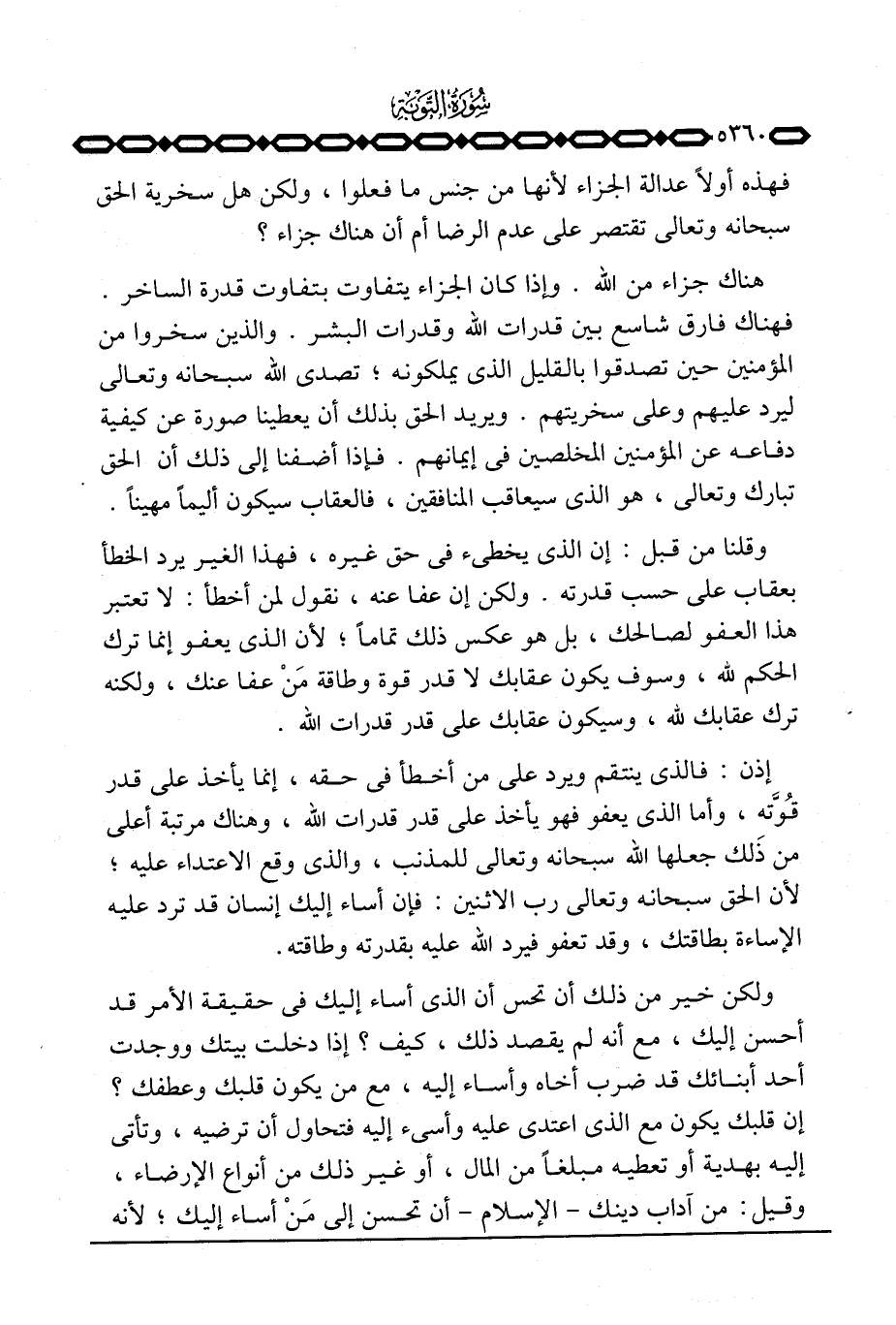 ولكن خير من ذلك أن تحس أن الذي أساء إليك في حقيقة الأمر قد أحسن إليك، مع أنه لم يقصد ذلك، كيف؟ إذا دخلت بيتك ووجدت أحد أبنائك قد ضرب أخاه وأساء إليه، مع من يكون قلبك وعطفك؟ إن قلبك يكون مع الذي اعتدى عليه وأسيء إليه فتحاول ان ترضيه، وتأتي إليه بهدية أو تعطيه مبلغاً من المال، أو غير ذلك من أنواع الإرضاء، وقيل: من آداب دينك - الإسلام - أن تحسن إلى مَنْ أساء إليك؛ لأنه