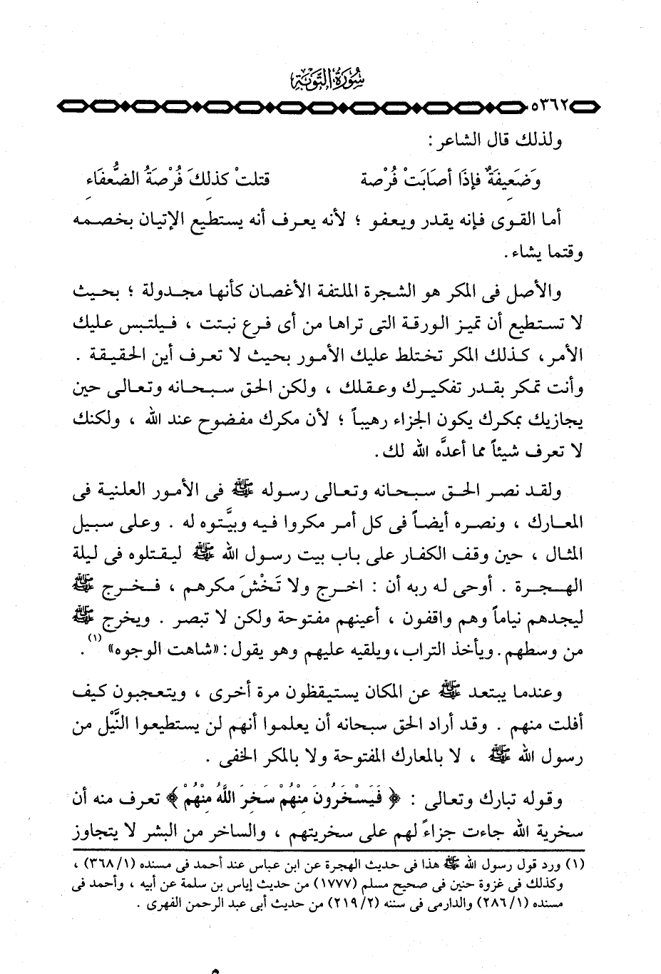 ولقد نصر الحق سبحانه وتعالى رسوله صَلَّى اللَّهُ عَلَيْهِ وَسَلَّم َ في الأمور العلنية في المعارك، ونصره أيضاً في كل أمر مكروا فيه وبيَّتوه له. وعلى سبيل المثال، حين وقف الكفار على باب بيت رسول الله صَلَّى اللَّهُ عَلَيْهِ وَسَلَّم َ ليقتلوه في ليلة الهجرة. أوحى له ربه أن: اخرج ولا تَخْشَ مكرهم، فخرج صَلَّى اللَّهُ عَلَيْهِ وَسَلَّم َ ليجدهم نياماً وهم واقفون، أعينهم مفتوحة ولكن لا تبصر. ويخرج صَلَّى اللَّهُ عَلَيْهِ وَسَلَّم َ من وسطهم. ويأخذ التراب، ويلقيه عليهم وهو يقول: «شاهت الوجوه» .