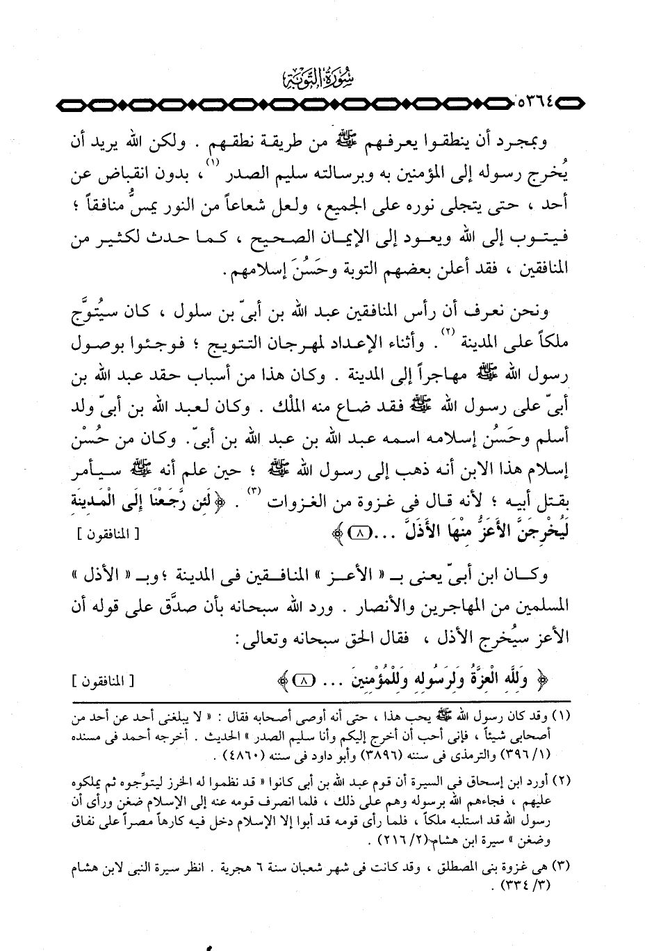 وكان ابن أبيّ يعني ب «الأعز» المنافقين في المدينة؛ وب «الأذل» المسلمين من المهاجرين والأنصار. ورد الله سبحانه بأن صدَّق على قوله أن الأعز سيُخرج الأذل، فقال الحق سبحانه وتعالى: {وَلِلَّهِ العزة وَلِرَسُولِهِ وَلِلْمُؤْمِنِينَ ... } [المنافقون: 8]