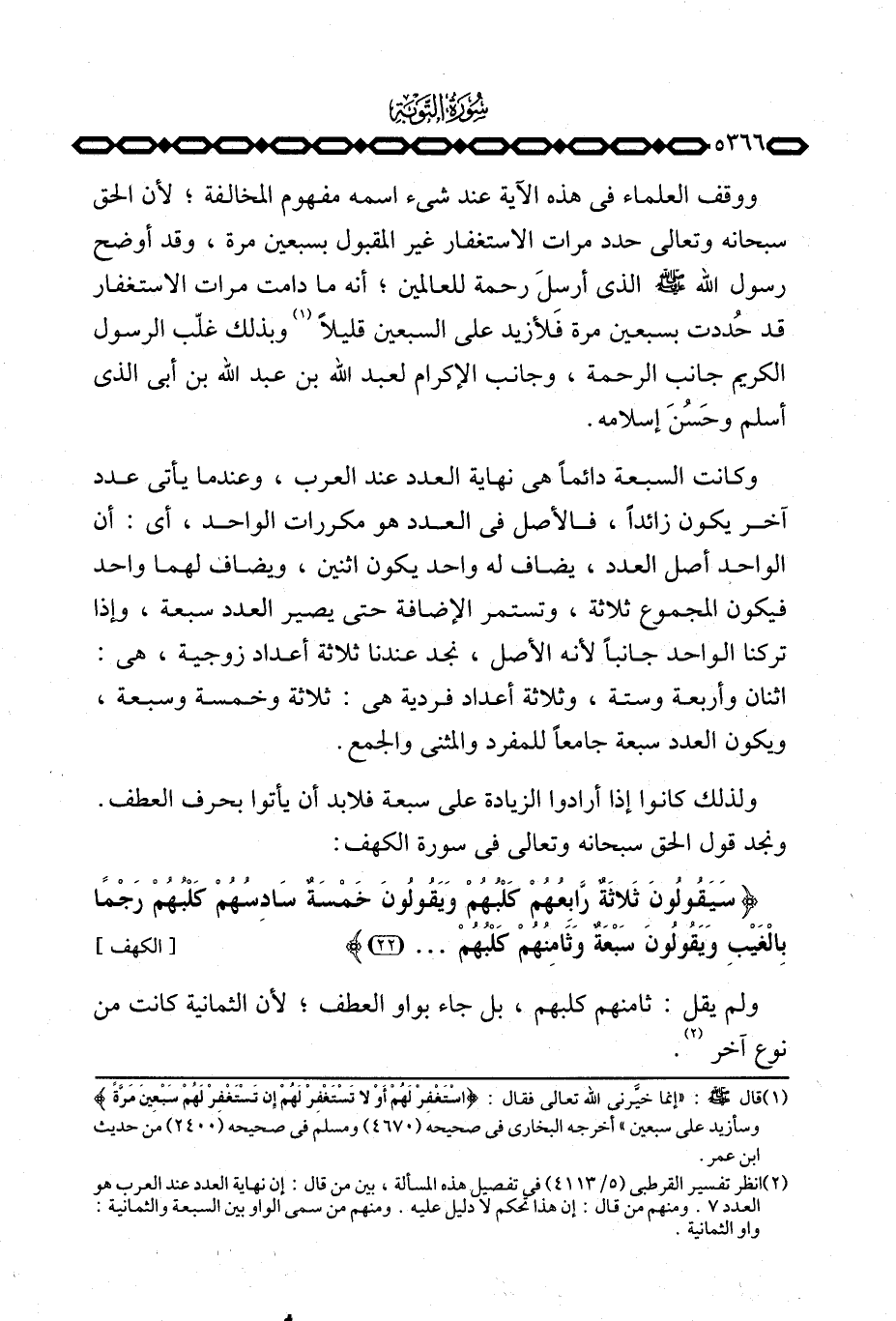 ولذلك كانوا إذا أرادوا الزيادة على سبعة فلابد أن يأتوا بحرف العطف. ونجد قول الحق سبحانه وتعالى في سورة الكهف: {سَيَقُولُونَ ثَلاثَةٌ رَّابِعُهُمْ كَلْبُهُمْ وَيَقُولُونَ خَمْسَةٌ سَادِسُهُمْ كَلْبُهُمْ رَجْماً بالغيب وَيَقُولُونَ سَبْعَةٌ وَثَامِنُهُمْ كَلْبُهُمْ ... } [الكهف: 22]