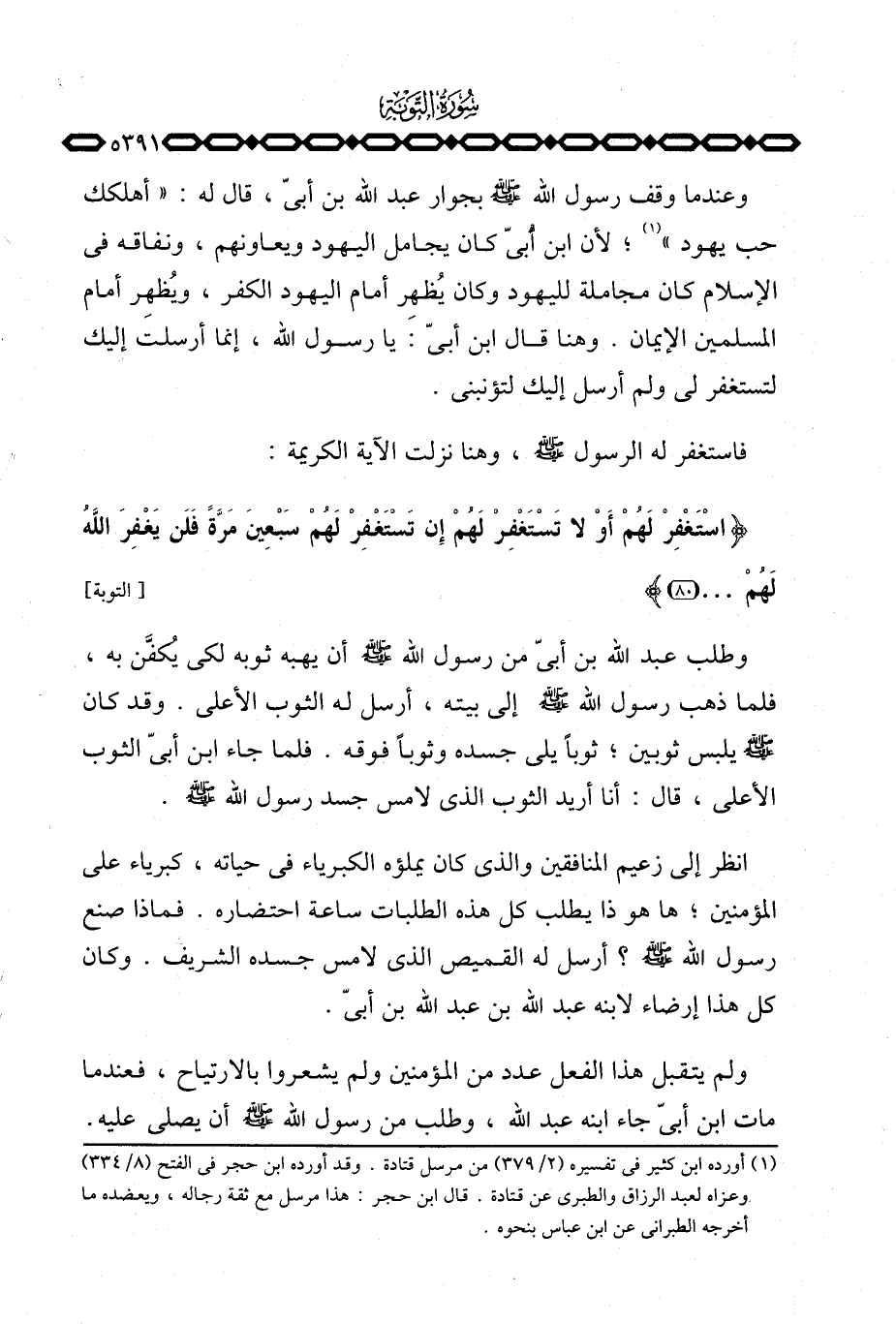 فاستغفر له الرسول صلى الله علهي وسلم، وهنا نزلت الآية الكريمة: {استغفر لَهُمْ أَوْ لاَ تَسْتَغْفِرْ لَهُمْ إِن تَسْتَغْفِرْ لَهُمْ سَبْعِينَ مَرَّةً فَلَن يَغْفِرَ الله لَهُمْ} [التوبة: 80]