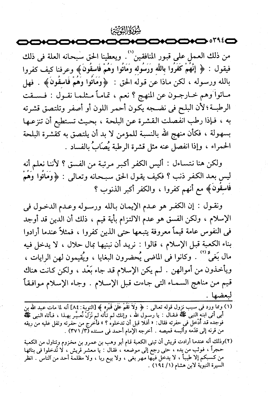 ونقول: إن الكفر هو عدم الإيمان بالله ورسوله وعدم الدخول في الإسلام، ولكن الفسق هو عدم الالتزام بأية قيم، ذلك أن الدين قد أوجد في النفوس عامة قيماً معروفة يتبعها حتى الذين كفروا، فمثلاً عندما أرادوا بناء الكعبة قبل الإسلام، قالوا: نريد أن نبنيها بمال حلال، لا يدخل فيه مال بَغيٍّ. وكانوا في الماضي يُحضرون البغايا، ويُقيمون لهن الرايات، ويأخذون من أموالهن. لم يكن الإسلام قد جاء بَعْد، ولكن كانت هناك قيم من مناهج السماء التي جاءت قبل الإسلام. وجاء الإسلام موافقاً لبعضها.