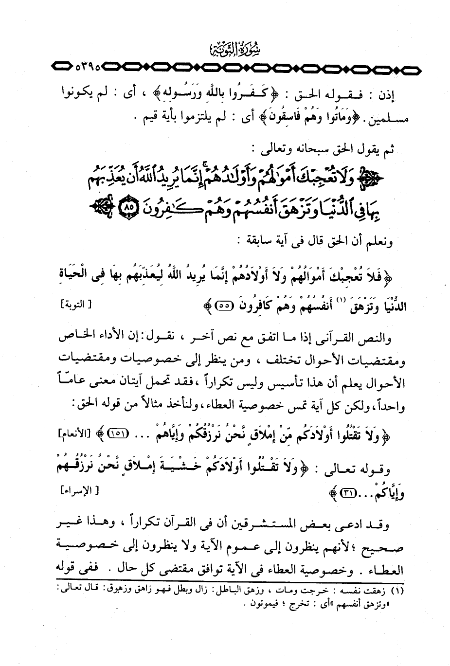 وقد ادعى بعض المستشرقين أن في القرآن تكراراً، وهذا غير صحيح؛ لأنهم ينظرون إلى عموم الآية ولا ينظرون إلى خصوصية العطاء. وخصوصية العطاء في الآية توافق مقتضى كل حال. ففي قوله
