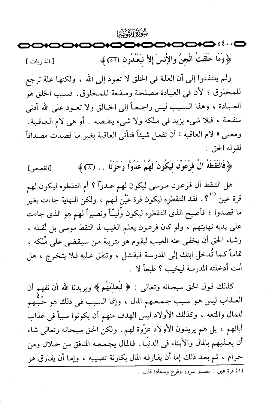 ولم يلتفتوا إلى أن العلة في الخلق لا تعود إلى الله، ولكنها علة ترجع للمخلوق؛ لأن في العبادة مصلحة ومنفعة للمخلوق. فسبب الخلق هو العبادة، وهذا السبب ليس راجعاً إلى الخالق ولا تعود على الله أدنى منفعة، فلا شيء يزيد في ملكه ولا شيء ينقصه. أو هي لام العاقبة. ومعنى «لام العاقبة» أن تفعل شيئاً فتأتي العاقبة بغير ما قصدت مصداقاً لقوله الحق: {فالتقطه آلُ فِرْعَوْنَ لِيَكُونَ لَهُمْ عَدُوّاً وَحَزَناً ... } [القصص: 8]