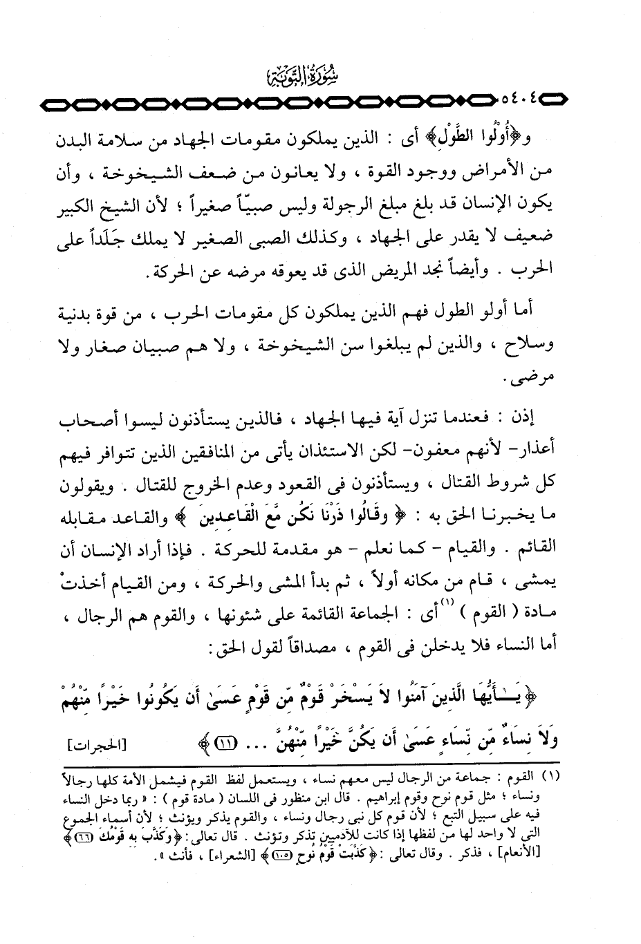 أما أولو الطول فهم الذين يملكون كل مقومات الحرب، من قوة بدنية وسلاح، والذين لم يبلغوا سن الشيخوخة، ولا هم صبيان صغار ولا مرضى.