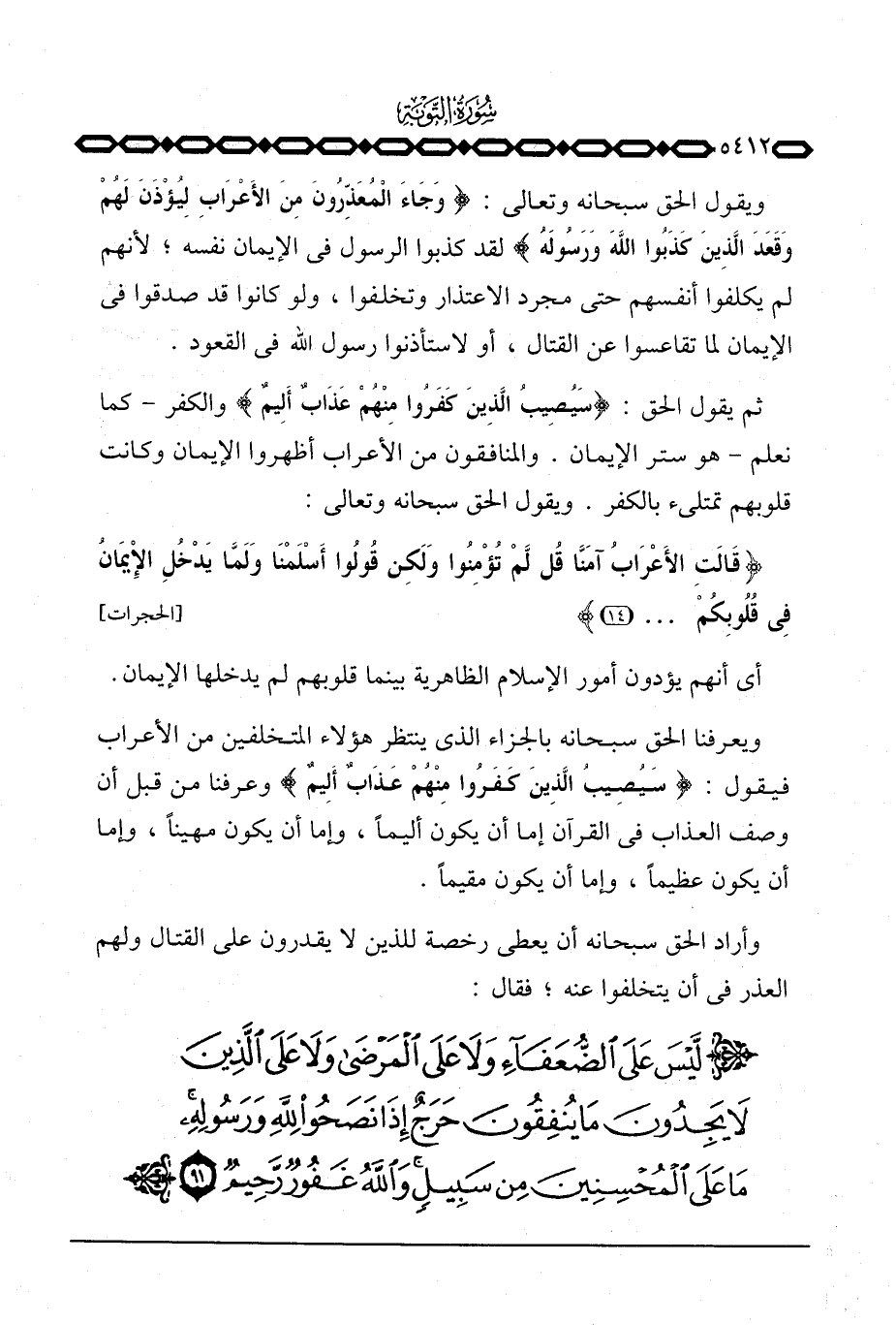 ويقول الحق سبحانه وتعالى: {وَجَآءَ المعذرون مِنَ الأعراب لِيُؤْذَنَ لَهُمْ وَقَعَدَ الذين كَذَبُواْ الله وَرَسُولَهُ} لقد كذبوا الرسول في الإيمان نفسه؛ لأنهم لم يكلفوا أنفسهم حتى مجرد الاعتذار وتخلفوا، ولو كانوا قد صدقوا في الإيمان لما تقاعسوا عن القتال، أولا استأذنوا رسول الله في القعود.