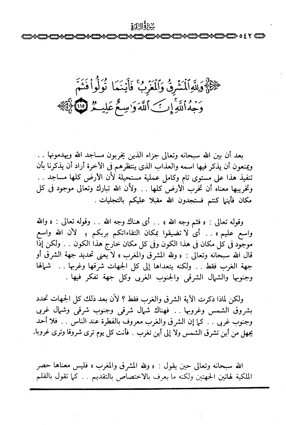 بعد أن بين الله سبحانه وتعالى جزاء الذين يخربون مساجد الله ويهدمونها. . ويمنعون أن يذكر فيها اسمه والعذاب الذي ينتظرهم في الآخرة أراد أن يذكرنا بأن تنفيذ هذا على مستوى تام وكامل عملية مستحيلة لأن الأرض كلها مساجد. . وتخريبها معناه أن تخرب الأرض كلها. . لأن الله تبارك وتعالى موجود في كل مكان فأينما كنتم فستجدون الله مقبلا عليكم بالتجليات.
