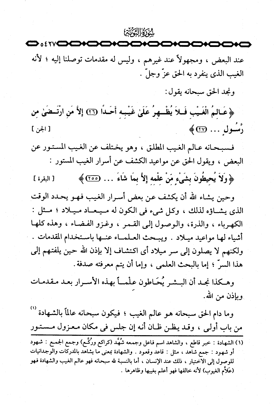فسبحانه عالم الغيب المطلق، وهو يختلف عن الغيب المستور عن البعض، ويقول الحق عن مواعيد الكشف عن أسرار الغيب المستور: {وَلاَ يُحِيطُونَ بِشَيْءٍ مِّنْ عِلْمِهِ إِلاَّ بِمَا شَآءَ ... } [البقرة: 255]