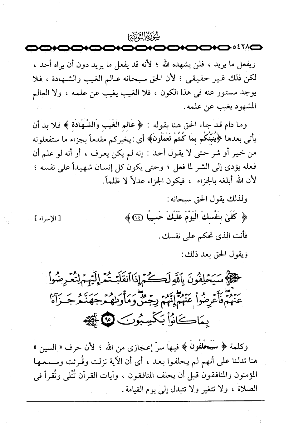 وكلمة {سَيَحْلِفُونَ} فيها سرّ إعجازي من الله؛ لأن حرف «السين» هنا تدلنا على أنهم لم يحلفوا بعد، أي أن الآية نزلت وقُرئت وسمعها المؤمنون والمنافقون قبل أن يحلف المنافقون، وآيات القرآن تُتْلى وتُقرأ في الصلاة، ولا تتغير ولا تتبدل إلى يوم القيامة.