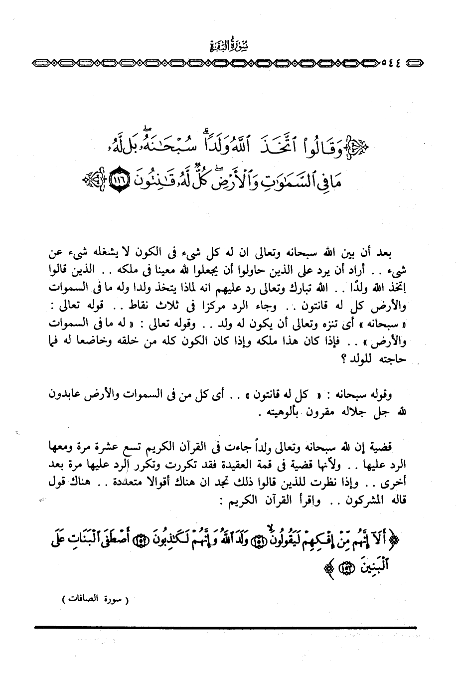 بعد أن بين الله سبحانه وتعالى أن له كل شيء في الكون لا يشغله شيء عن شيء. . أراد أن يرد على الذين حاولوا أن يجعلوا لله معينا في ملكه. . الذين قالوا اتخذ الله ولداً. . الله تبارك وتعالى رد عليهم أنه لماذا يتخذ ولدا وله ما في السموات والأرض كل له قانتون. . وجاء الرد مركزا في ثلاث نقاط. . قوله تعالى: «سبحانه» أي تنزه وتعالى أن يكون له ولد. . وقوله تعالى: {لَّهُ مَا فِي السماوات والأرض} . . فإذا كان هذا ملكه وإذا كان الكون كله من خلقه وخاضعا له فما حاجته للولد؟