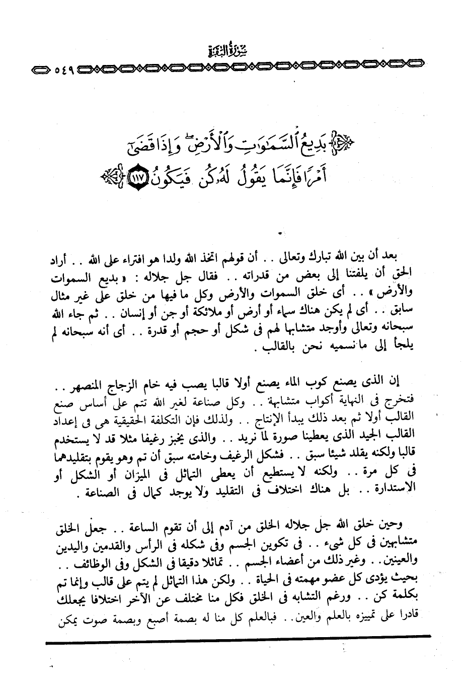 بعد أن بين الله تبارك وتعالى. . أن قولهم اتخذ الله ولدا هو افتراء على الله. . أراد الحق أن يلفتنا إلى بعض من قدراته. . فقال جل جلاله: {بَدِيعُ السماوات والأرض} . . أي خلق السموات والأرض وكل ما فيها من خلق على غير مثال سابق. . أي لم يكن هناك سماء أو أرض أو ملائكة أو جن أو إنسان. . ثم جاء الله سبحانه وتعالى وأوجد متشابها لهم في شكل أو حجم أو قدرة. . أي أنه سبحانه لم يلجأ إلى ما نسميه نحن بالقالب.