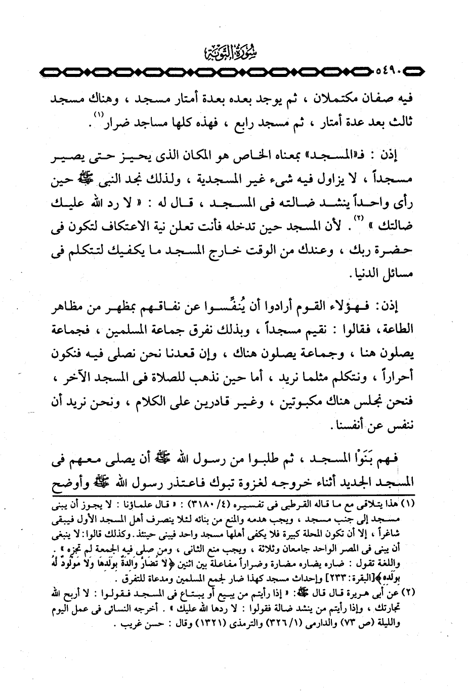 فيه صفان مكتملان، ثم يوجد بعده بعدة أمتار مسجد، وهناك مسجد ثالث بعد عدة أمتار، ثم مسجد رابع، فهذه كلها مساجد ضرار.