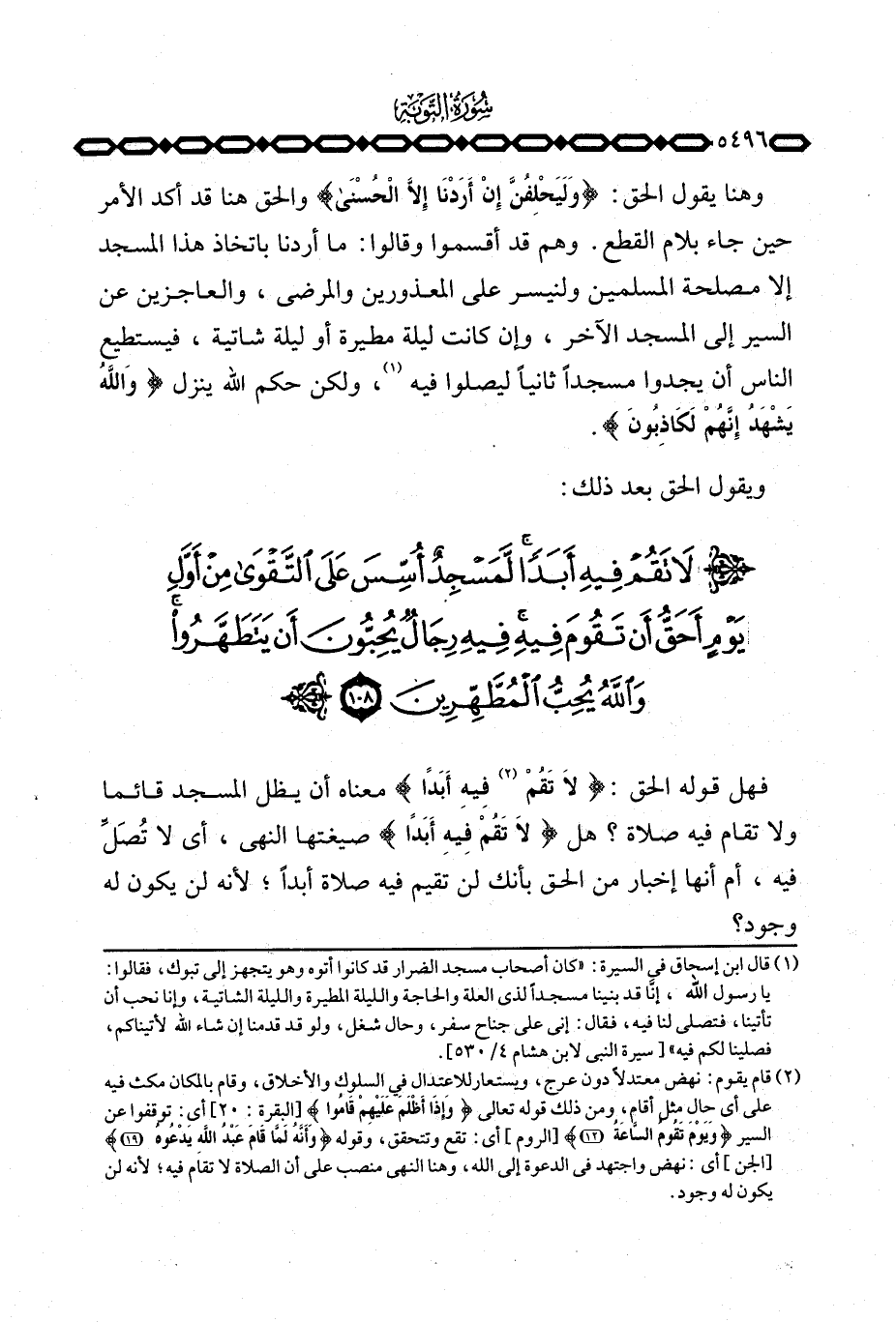 ويقول الحق بعد ذلك: {لاَ تَقُمْ فِيهِ أَبَداً لَّمَسْجِدٌ أُسِّسَ عَلَى ... }