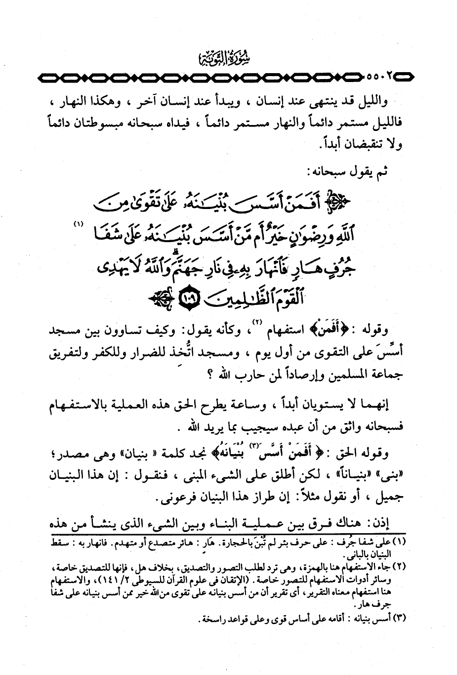 ثم يقول سبحانه: {أَفَمَنْ أَسَّسَ بُنْيَانَهُ على تقوى ... }