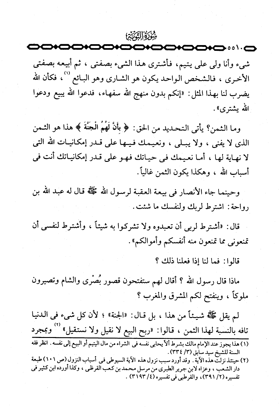 شيء وأنا ولي على يتيم، فأشتري هذا الشيء بصفتي، ثم أبيعه بصفتي الأخرى، فالشخص الواحد يكون هو الشاري وهو البائع، فكأن الله يضرب لنا بهذا المثل: «إنكم بدون منهج الله سفهاء، فدعوا الله يبيع ودعوا الله يشتري» .