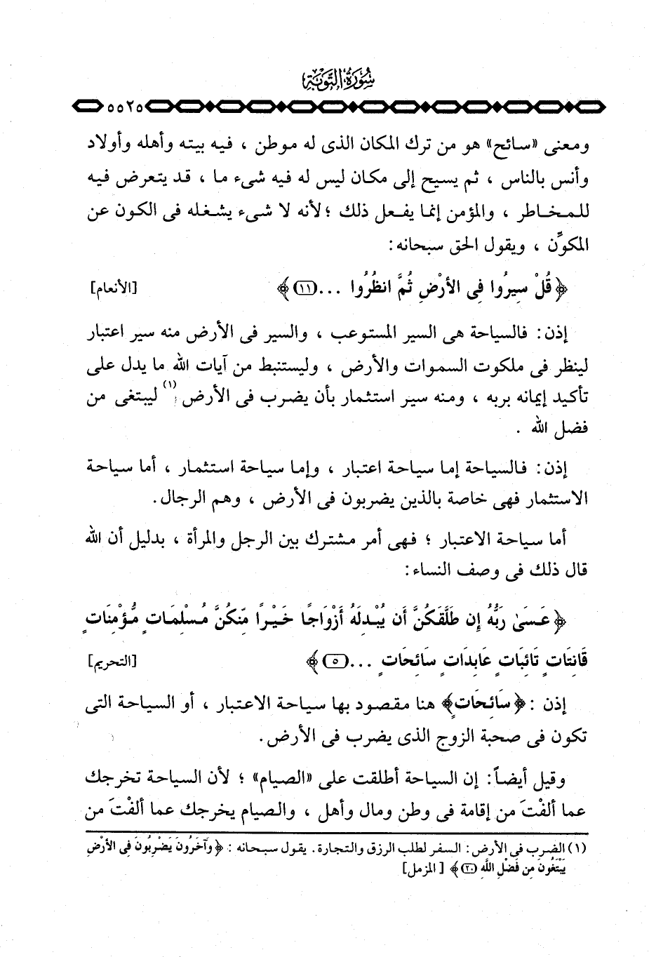 إذن: فالسياحة إما سياحة اعتبار، وإما سياحة استثمار، أما سياحة الاستثمار فهي خاصة بالذين يضربون في الأرض، وهم الرجال.