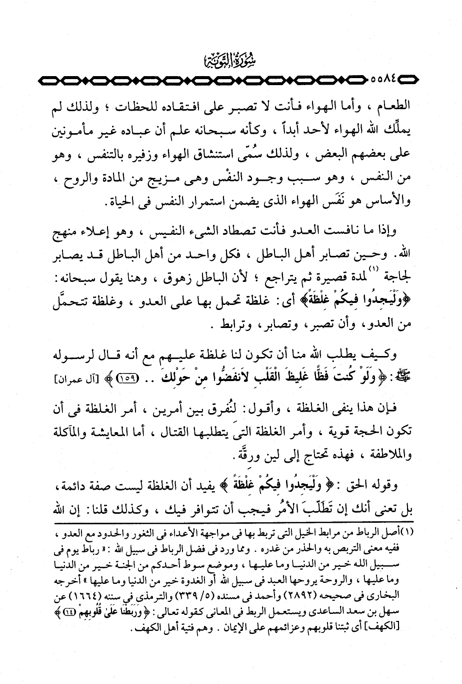 وإذا ما نافست العدو فأنت تصطاد الشيء النفيس، وهو إعلاء منهج الله. وحين تصابر أهل الباطل، فكل واحد من أهل الباطل قد يصابر لجاجة لمدة قصيرة ثم يتراجع؛ لأن الباطل زهوق، وهنا يقول سبحانه: {وَلْيَجِدُواْ فِيكُمْ غِلْظَةً} يفيد أن الغلظة ليست صفة دائمة، بل تعني أنك تَطَلّبَ الأمُر فيجب أن تتوافر فيك، وكذلك قلنا: إن الله