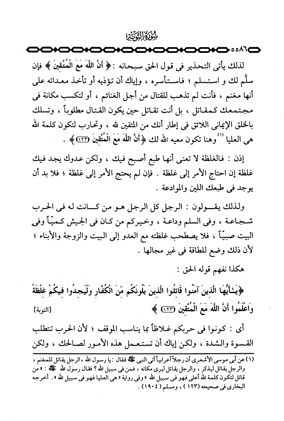 {ياأيها الذين آمَنُواْ قَاتِلُواْ الذين يَلُونَكُمْ مِّنَ الكفار وَلْيَجِدُواْ فِيكُمْ غِلْظَةً واعلموا أَنَّ الله مَعَ المتقين} [التوبة: 123]