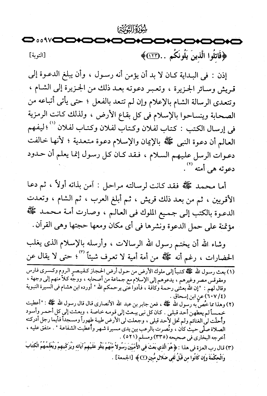 أما محمد صَلَّى اللَّهُ عَلَيْهِ وَسَلَّم َ فقد كانت لرسالته مراحل: آمن بذلك أولاً، ثم دعا الأقربين، ثم من بعد ذلك قريش، ثم أبلغ العرب، ثم الشام، وتعدت الدعوة بالكتب إلى جميع الملوك في العالم، وصارت أمة محمد صَلَّى اللَّهُ عَلَيْهِ وَسَلَّم َ مؤتمنة على حمل الدعوة ونشرها في أي مكان ومعها حجتها وهي القرآن.