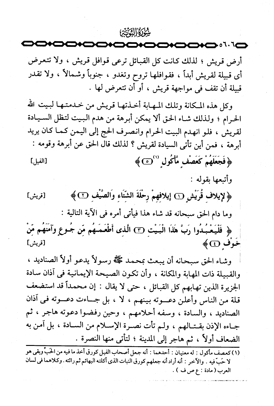 وكل هذه المكانة وتلك المهابة أخذتها قريش من خدمتها لبيت الله الحرام؛ ولذلك شاء الحق ألا يمكن أبرهة من هدم البيت لتظل السيادة لقريش، فلو انهدم البيت الحرام وانصرف الحج إلى اليمن كما كان يريد أبرهة، فمن أين تأتي السيادة لقريش؟ لذلك قال الحق عن أبرهة وقومه: {فَجَعَلَهُمْ كَعَصْفٍ مَّأْكُولٍ} [الفيل: 5]