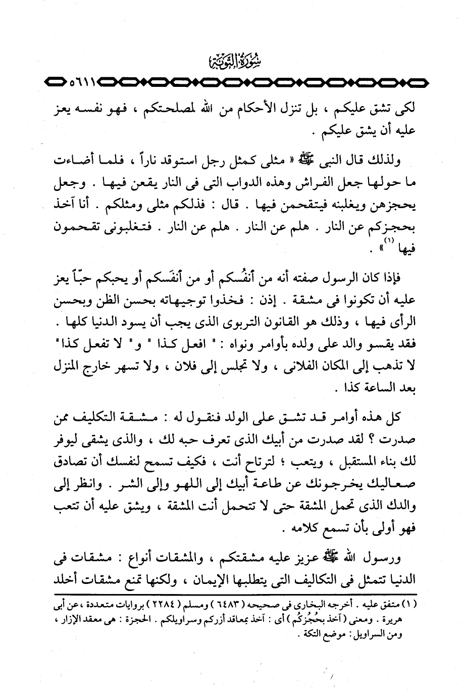 ورسول الله صَلَّى اللَّهُ عَلَيْهِ وَسَلَّم َ عزيز عليه مشقتكم، والمشقات أنواع: مشقات في الدنيا تتمثل في التكاليف التي يتطلبها الإيمان، ولكنها تمنع مشقات أخلد