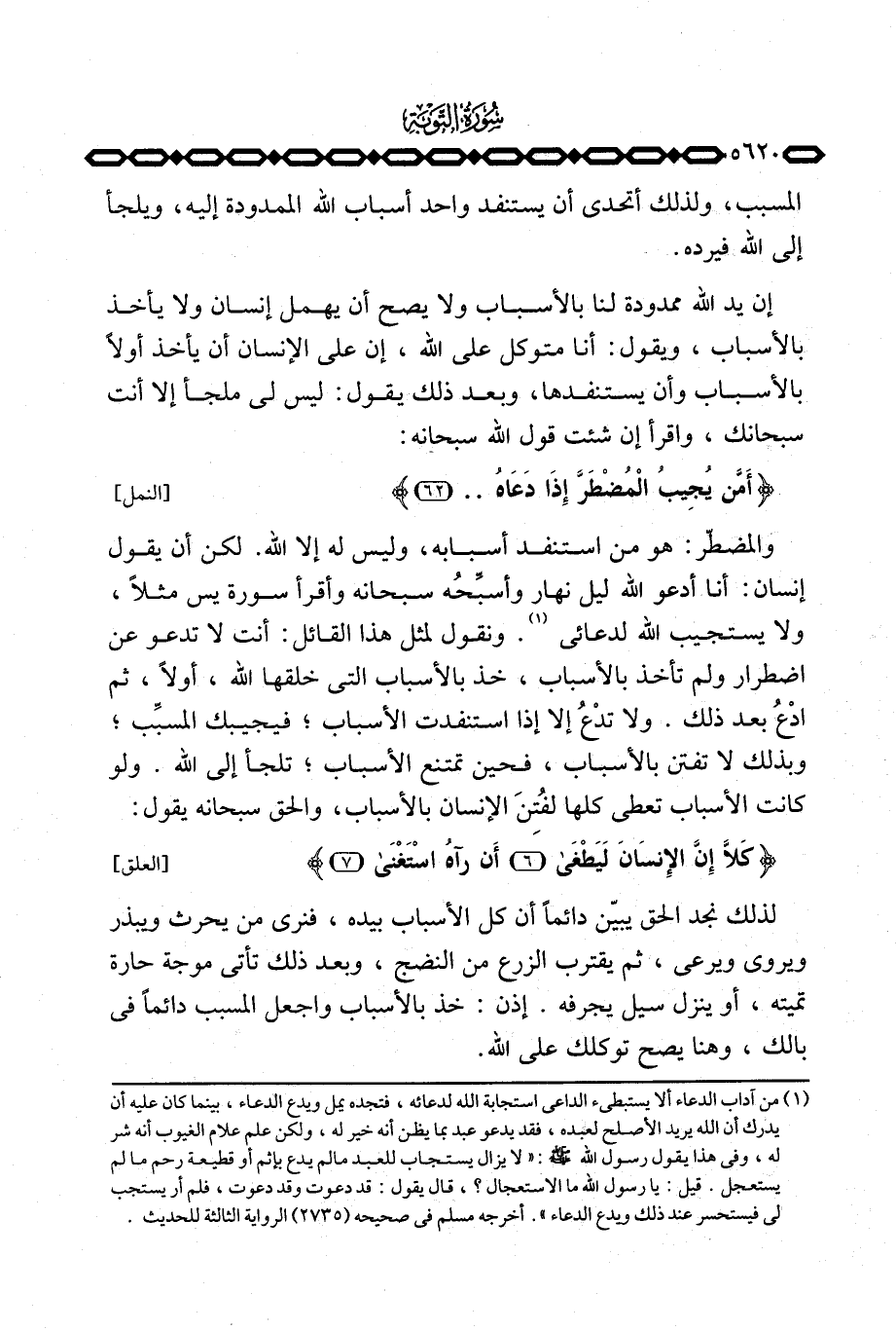 المسبب، ولذلك أتحدى أن يستنفد واحد أسباب الله الممدودة إليه، ويلجأ إلى الله فيرده.