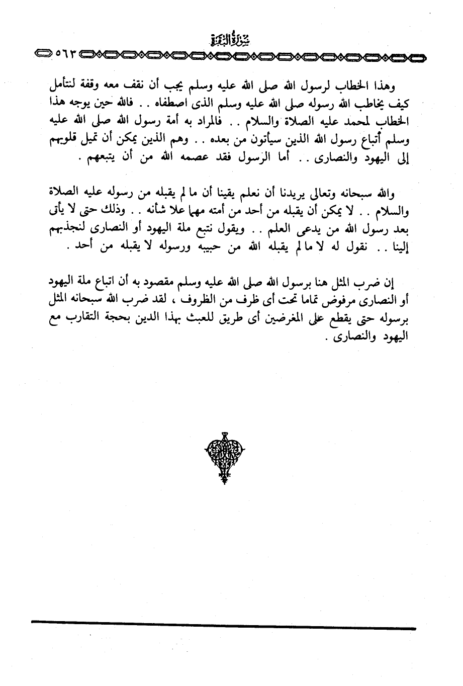والله سبحانه وتعالى يريدنا أن نعلم يقينا أن ما لم يقبله من رسوله عَلَيْهِ الصَّلَاة وَالسَّلَام ُ. . لا يمكن أن يقبله من أحد من أمته مهما علا شأنه. . وذلك حتى لا يأتي بعد رسول الله من يدعي العلم. . ويقول نتبع ملة اليهود أو النصارى لنجذبهم إلينا. . نقول له لا ما لم يقبله الله من حبيبه ورسوله لا يقبله من أحد.