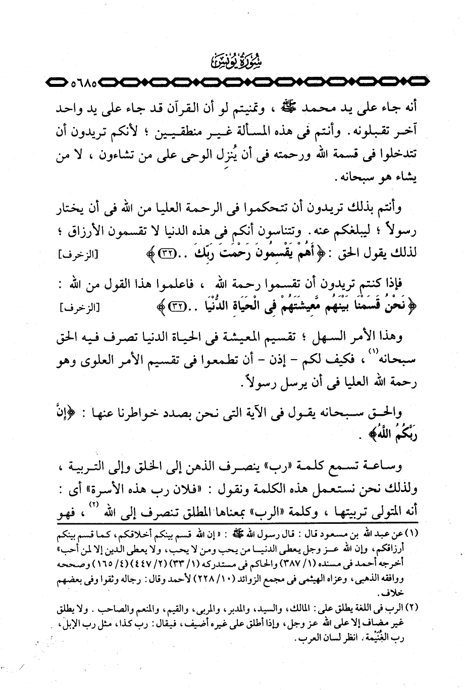 فإذا كنتم تريدون أن تقسموا رحمة الله، فاعلموا هذا القول من الله: {نَحْنُ قَسَمْنَا بَيْنَهُمْ مَّعِيشَتَهُمْ فِي الحياة الدنيا ... } [الزخرف: 32]
