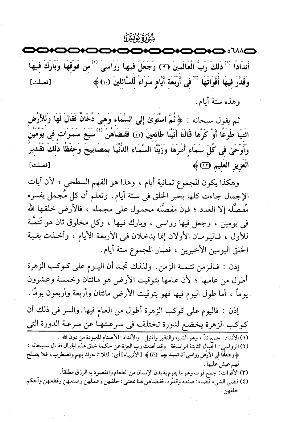 أَندَاداً ذَلِكَ رَبُّ العالمين وَجَعَلَ فِيهَا رَوَاسِيَ مِن فَوْقِهَا وَبَارَكَ فِيهَا وَقَدَّرَ فِيهَآ أَقْوَاتَهَا في أَرْبَعَةِ أَيَّامٍ سَوَآءً لِّلسَّآئِلِينَ} [فصلت: 9 - 10]